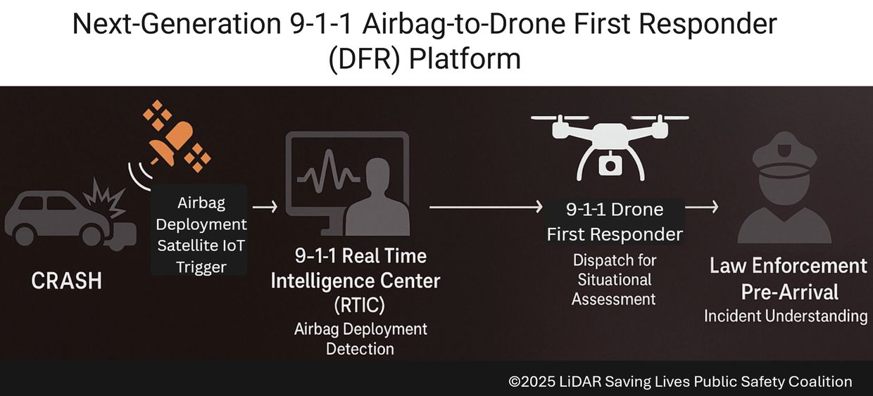 - AI-Driven, LiDAR-Enabled Scene Awareness: Aerial imaging provides 9-1-1 RTIC dispatchers “eyes on the scene” instantly.
