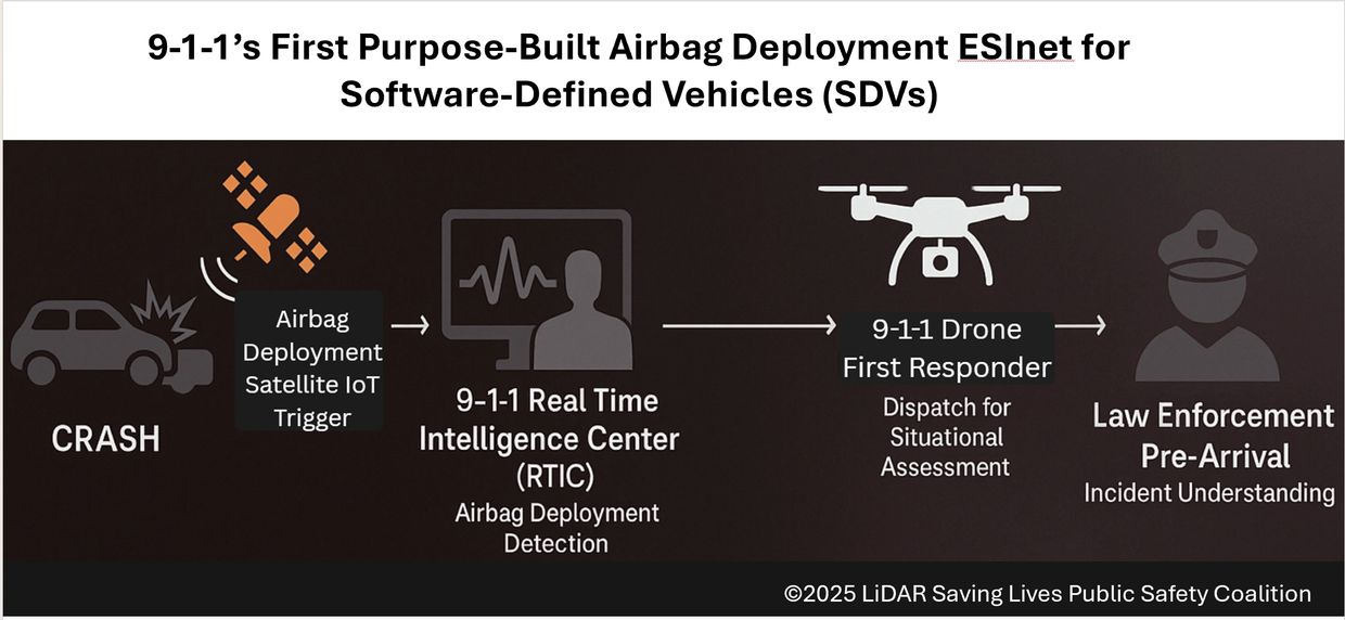 We focus on the most time-sensitive link in the chain of survival: the seconds between software-defined vehicle airbag deployment and 9-1-1 Real Time Intelligence Center (RTIC) awareness.